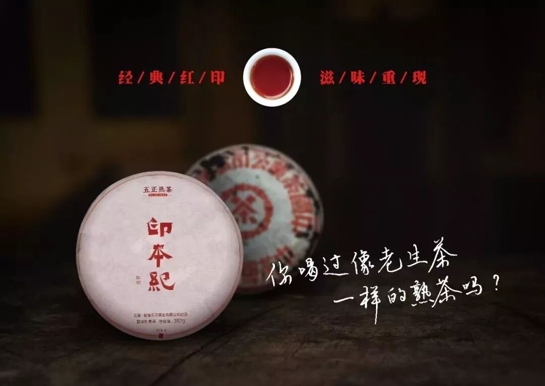 五正熟茶,香甘重滑。印本紀(紅?。昝缽涂?0年代紅印圓茶的滋味口感,再造巔峰,演繹傳奇!