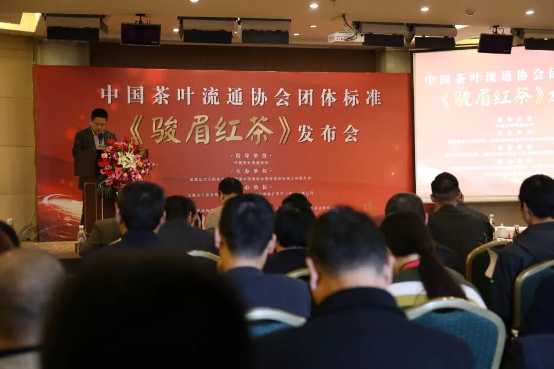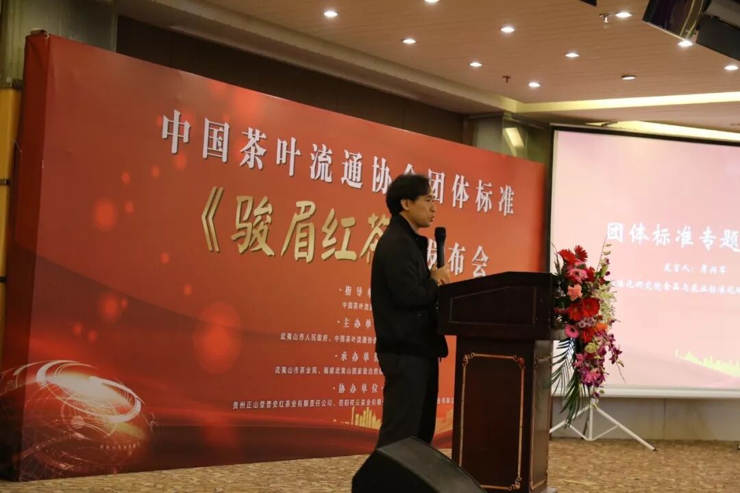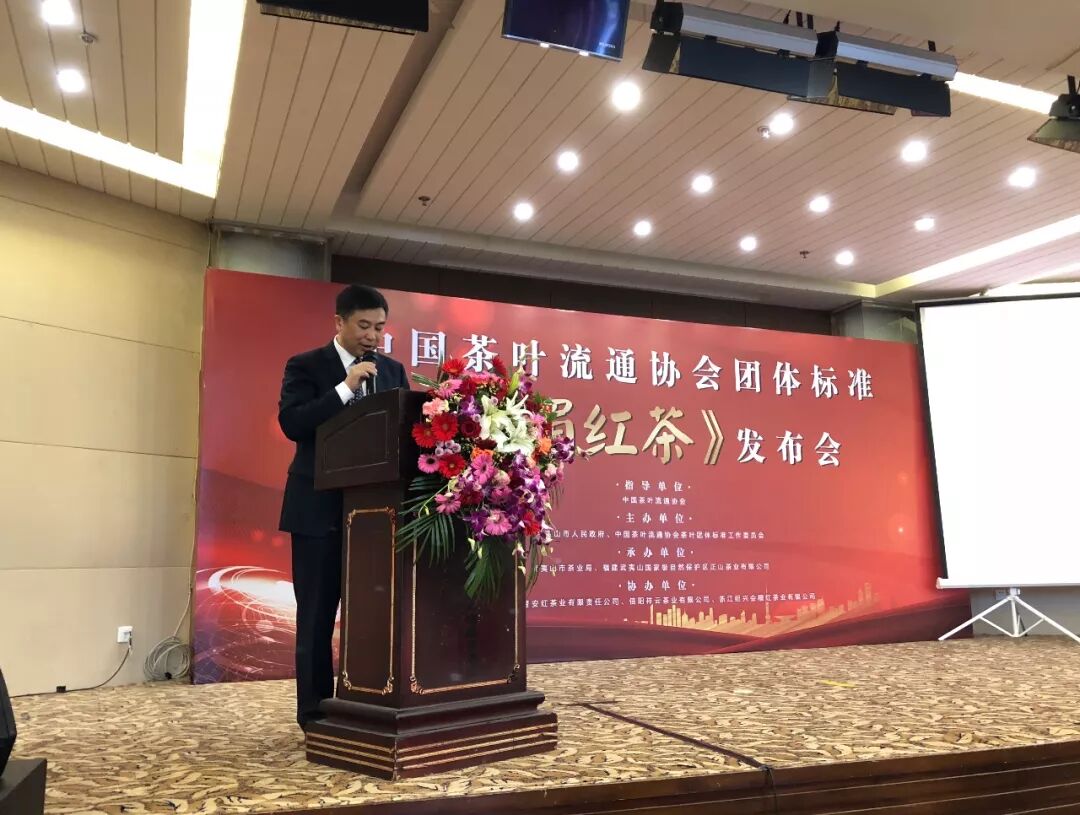 經(jīng)過各位專家對《駿眉紅茶》團(tuán)體標(biāo)準(zhǔn)的介紹和解讀,發(fā)布會(huì)進(jìn)入了高潮階段,中國茶葉流通協(xié)會(huì)常務(wù)副秘書長朱仲海隆重宣布《駿眉紅茶》團(tuán)體標(biāo)準(zhǔn)正式發(fā)布!