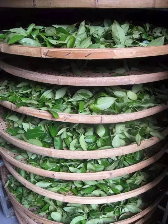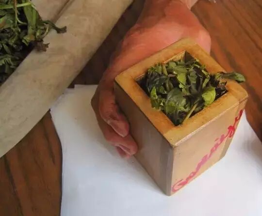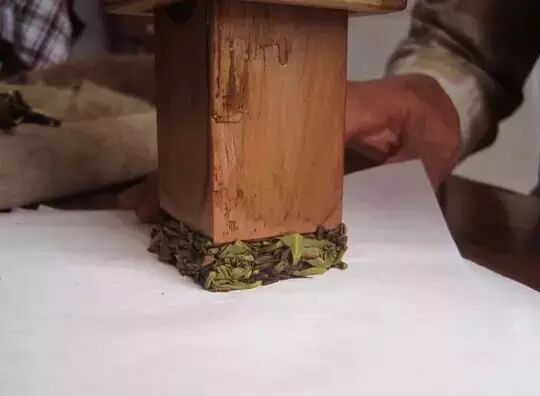 漳平水仙的制作從采摘-曬青-晾青-搖青-晾青-炒青-揉捻-紙包做型-進(jìn)入烘焙階段。茶的品種特征在搖青進(jìn)入靜置的第二天將會(huì)充分表現(xiàn)出來(lái),這個(gè)時(shí)候茶葉的品質(zhì)已初見端倪。剛炒青后的茶葉要進(jìn)入做型階段,這個(gè)時(shí)候需要大量人工,有負(fù)責(zé)挑去黃片粗梗和過(guò)綠的葉片,接著開始紙包茶的制作,這是看似簡(jiǎn)單卻也是需要技巧的活。每人手里一套潛入鐵塊的木模具,下面墊好白色的熱封濾紙,用手感覺(jué)茶葉的重量大約在9g左右,用木槌敲壓后疊成紙包,然后拉過(guò)電烙鐵熱封定型在所有工序中,紙包定型是最需要手工操作的程序,當(dāng)然,這是漳平水仙的特色。