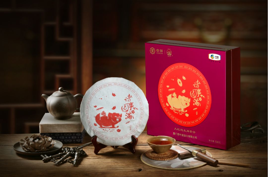 上等大紅袍生肖“巖茶餅”,集豬年、年份、公司印鑒模于一餅,是一款限量開發(fā)的“觀賞、品鑒收藏品”。高端木盒內(nèi)置證書、餅架、茶針、試泡小餅及同安珠光青瓷生肖杯。大氣莊重、吉祥;精美的包裝及限量加工,具品鑒、收藏價值。