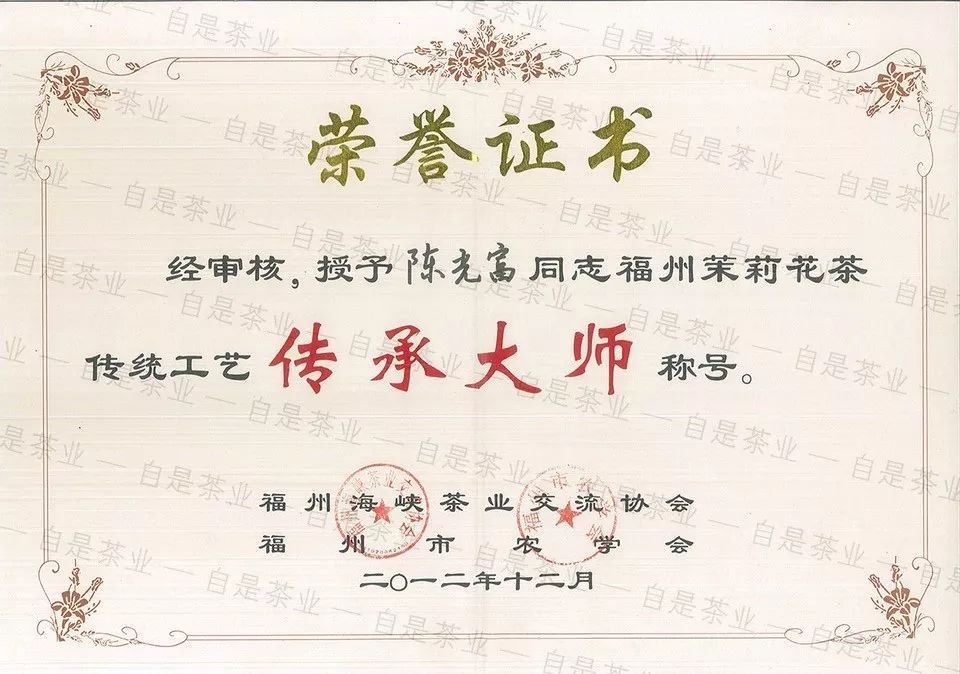 而其傳統(tǒng)的窨制工藝也被列入了國家非物質(zhì)文化遺產(chǎn)名錄。這項國家非物質(zhì)文化遺產(chǎn),只有三位國家級的傳承人,陳光富老師便是其中一位。