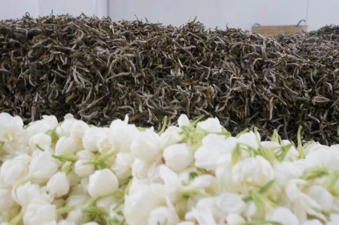 茉莉花茶的窨制工序復(fù)雜繁瑣,搭堆拌和、通花散熱、起花靜置,茶花分離完、烘干完才算一個窨次,九窨,則需要如此重復(fù)九遍。
