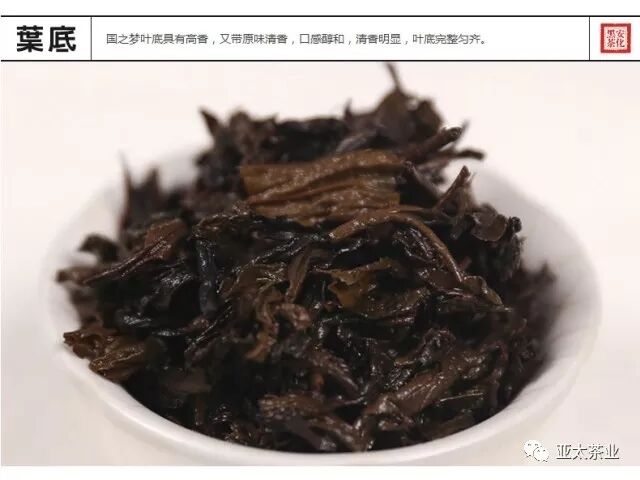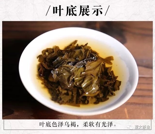 好的茶開湯,微微帶有甜酒香,湯色透亮如桐油,頭兩泡有稍許澀味,三泡后澀味漸淡至無。葉底呈青褐色??梢耘莸?2泡。