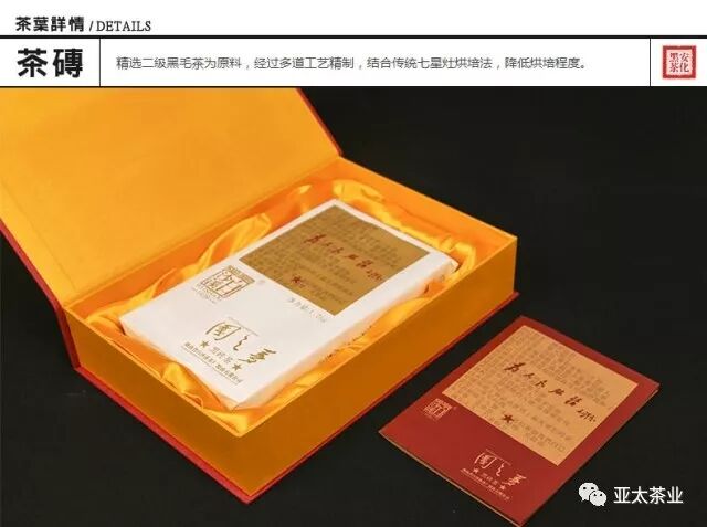 本品采用安化二級黑毛茶為原料,精心配制,多道工藝精制而成,降低烘焙度,突破傳統(tǒng)工藝,外型光潔,棱角分明,圖案、文字清晰;口感醇厚,清香明顯,葉底完整勻齊。