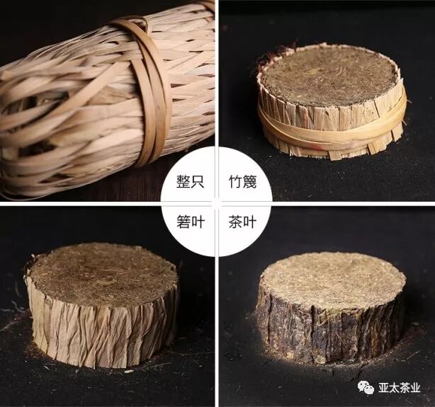 簍裝千兩茶呈比較規(guī)則的圓柱狀,沒有開剝時徑圍(橫截面的周長)70cm左右,高160cm左右。篾片松散、徑圍過大者次。