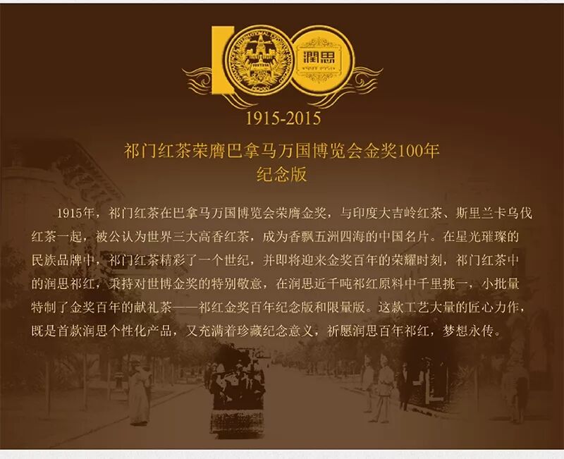 2010年潤(rùn)思祁紅入選中國(guó)2010年上海世博會(huì)聯(lián)合國(guó)館專(zhuān)用茶成為中國(guó)世博十大名茶。2017年12月2日,安徽國(guó)潤(rùn)茶業(yè)祁門(mén)紅茶老廠房入選“第二批中國(guó)20世紀(jì)建筑遺產(chǎn)項(xiàng)目”名錄。從貴池茶廠到國(guó)潤(rùn)祁紅,歷程變遷比較深刻的反應(yīng)了晚清到現(xiàn)在的中國(guó)茶工業(yè)演變歷史,從1875年的初建時(shí)的手工作坊,到1950年代建廠逐步發(fā)展壯大,成為傳統(tǒng)工藝與現(xiàn)代工業(yè)相結(jié)合的“活態(tài)遺產(chǎn)”傳承典型。