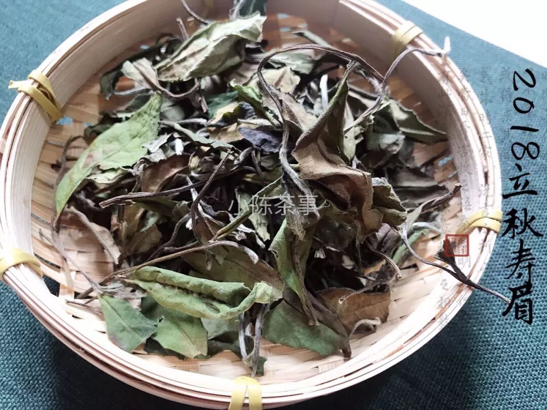 2018年立秋后采下來(lái)的太姥山高山秋壽眉,顏色是七彩色的,以土黃綠色為主,圭黃為輔,偶有磚紅,梗偶有褐色。芽色白。