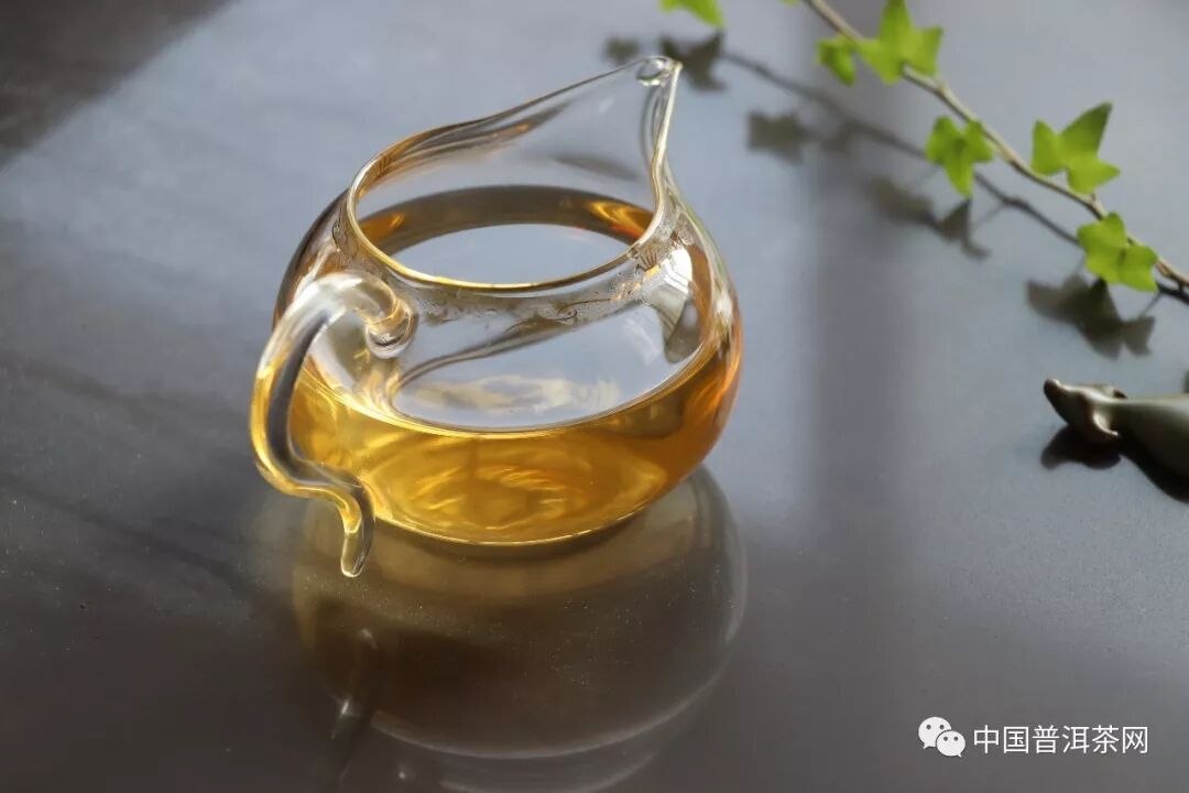 第1、2泡:茶湯湯色稍淡,淺黃透亮。第3-8泡,湯色明黃透亮,第9泡開始,湯色稍微減淡,仍是明黃透亮。整體茶湯清澈、明亮、透底。