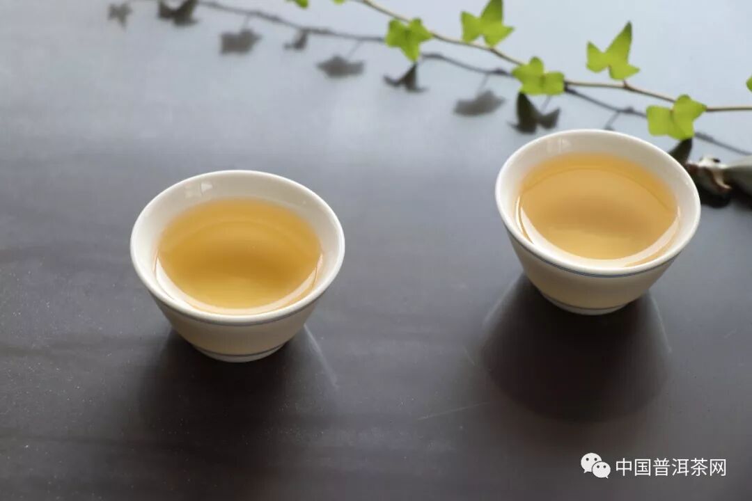 9號青餅條索粗壯、顯毫;湯色黃亮;滋味稠而厚,口感飽滿,生津快,回甘持久;茶氣剛烈。飲后整個口腔和喉嚨會感到苦后甘來、香甜滑潤、煙韻甜澤。