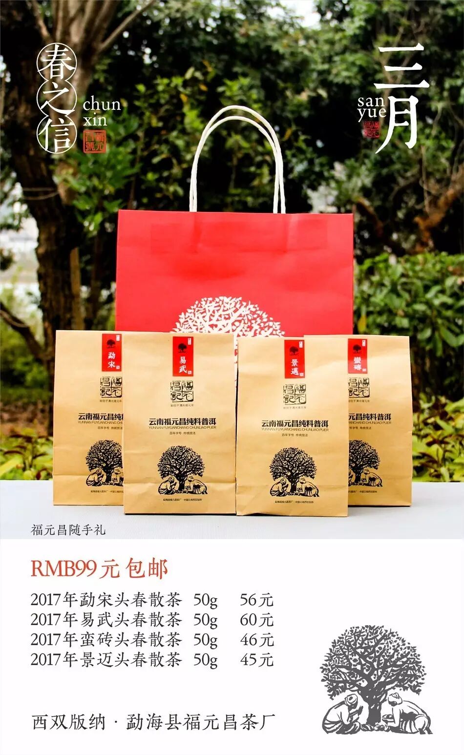 三月春茶分享禮包也是停供在即,還不是很清楚要購(gòu)買哪個(gè)春茶的茶友可以先購(gòu)買99元禮包,一次擁有4個(gè)山頭,品嘗尋找那一款你中意的茶。