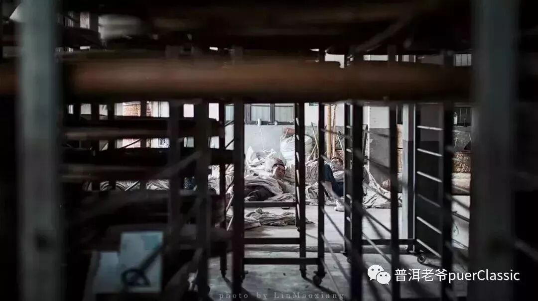 想象一下宜家的提貨區(qū),成噸的茶葉依次成袋,整齊地擺放在貨架上。工作車間里,所有的工人都穿著專屬的連體工服,帽子口罩,膠鞋手套是一個也不少。