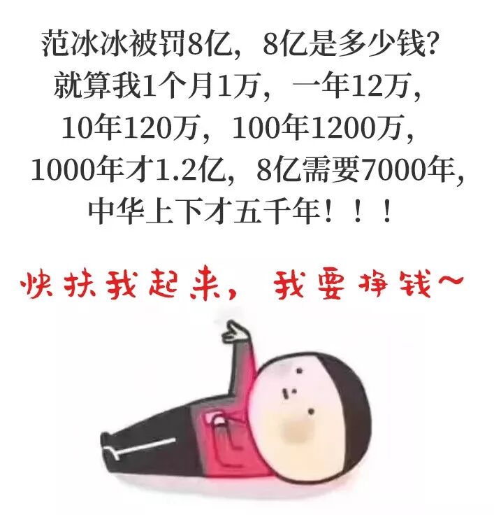 這次罰款接近范冰冰前面九年來的總收入(大約9個億,不包括房產(chǎn)等其他),元氣大傷(財富、名譽)的范冰冰是否能夠東山再起真的不好說,劉曉慶這個榜樣已經(jīng)樹在那里了。而由此引發(fā)的連鎖反應(yīng)肯定是演藝界那些人排隊交錢(補稅)、大量怕翻到黑底的影視公司被注銷;被崔點炮,與范、馮等有關(guān)的公司股票狂瀉蒸發(fā)數(shù)百億,股民們一片哀鴻,估計這次稅務(wù)部門賬上多出500個億應(yīng)該沒問題。