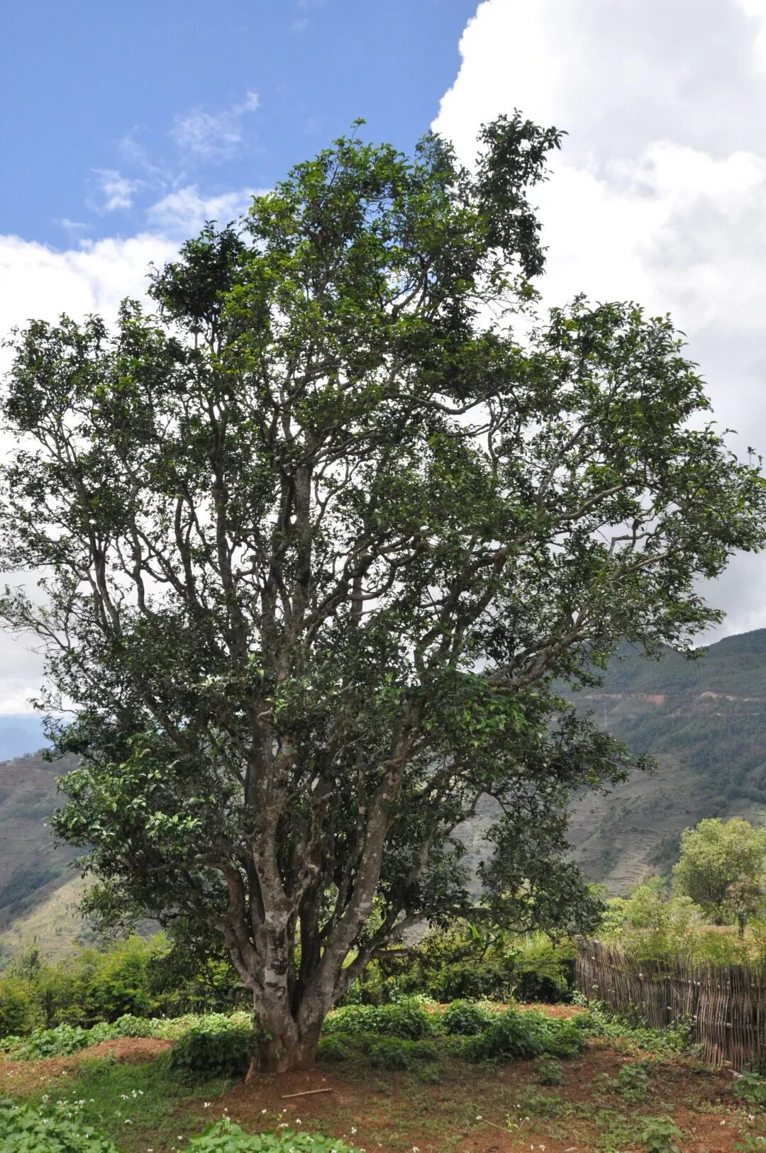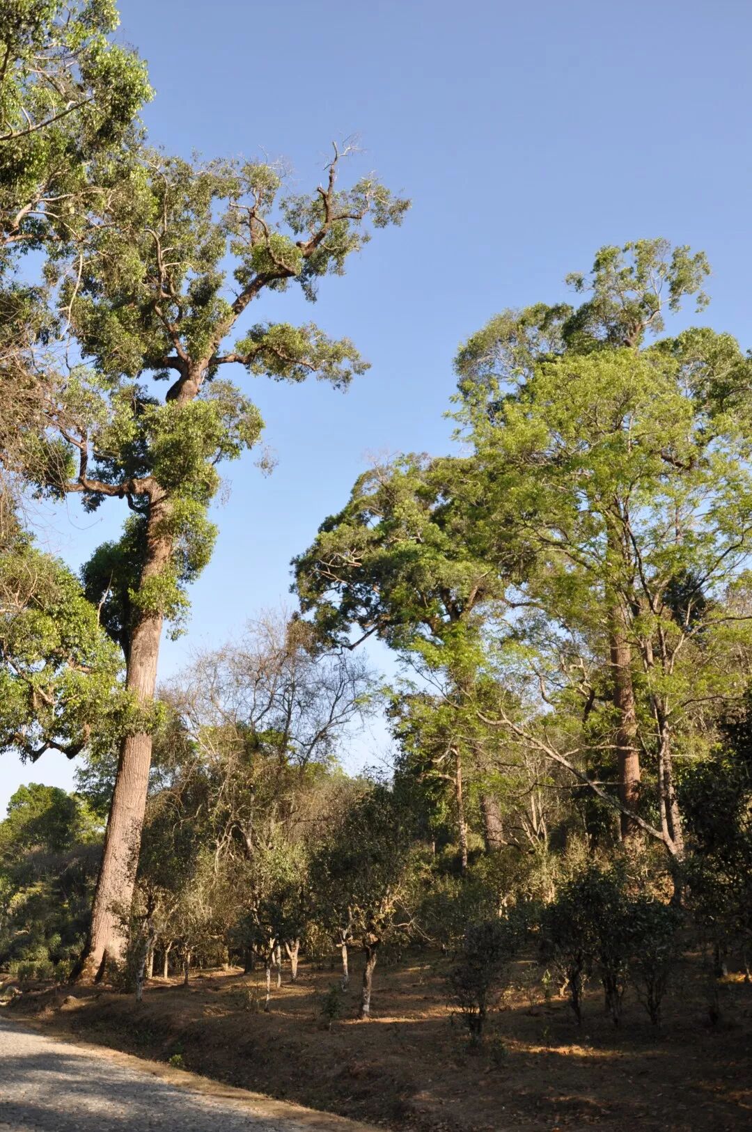 在云南民間有“樹的主干有多高,主根有多深;樹幅有多寬,須根有多長”流傳。所以喬木大樹茶根深柢固,利于向土壤深部生長,吸收更多礦物質等養(yǎng)分,茶樹通過稀疏種植,養(yǎng)分充足,光照均勻,易形成高大喬木樹型。