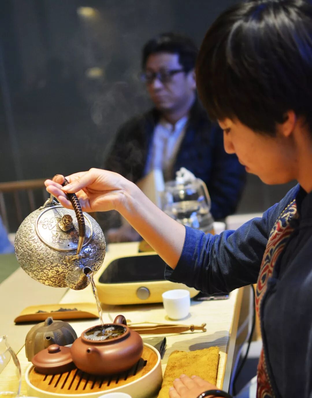 所謂的普洱韻其實看似是主觀條件反射而形成的抽象概念,身為楊氏太極第六代傳人,鄧時海自況飲綠茶宜迎風(fēng)展長拳,奏古箏,鏗鏘處豪興直追祖逖聞雞起舞;烏龍、巖茶勁道,合演南拳,頓挫從風(fēng)虎云龍之勢;而普洱合配古琴,端凝厚重,偉岸含蓄,收放自如,正堪比太極。