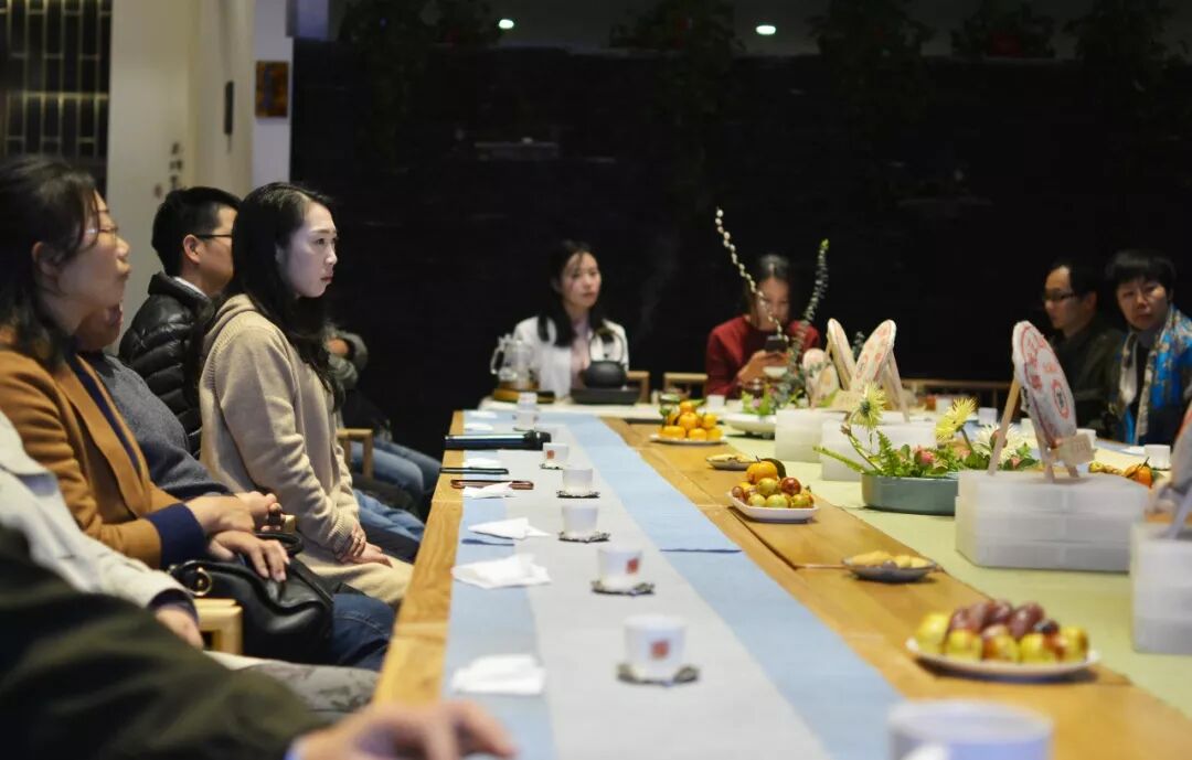 鄧時海先生從臺灣來春城講學(xué),作客位于煤機(jī)廠創(chuàng)意園區(qū)內(nèi)的云茶堂。幸得此地不當(dāng)鬧市,步入庭院,白墻屏風(fēng)上書一醒目的“濮茶”二字,老廠房、紅磚墻,華堂深處,明燈璨然,蜿蜒小徑徐徐導(dǎo)引客人登堂入室。
