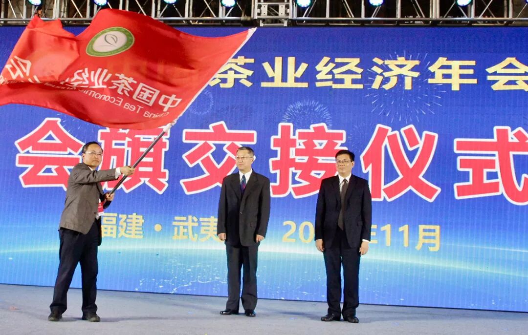 在會旗交接儀式上,武夷山人民政府將代表著友誼、信念、夢想的年會會旗傳遞給下屆承辦地廣東省清遠英德市。會旗由南平市人民政府常務(wù)副市長伍斌轉(zhuǎn)交給中華全國供銷合作總社黨組成員王偉,清遠市人民政府副市長雷玉春接旗。