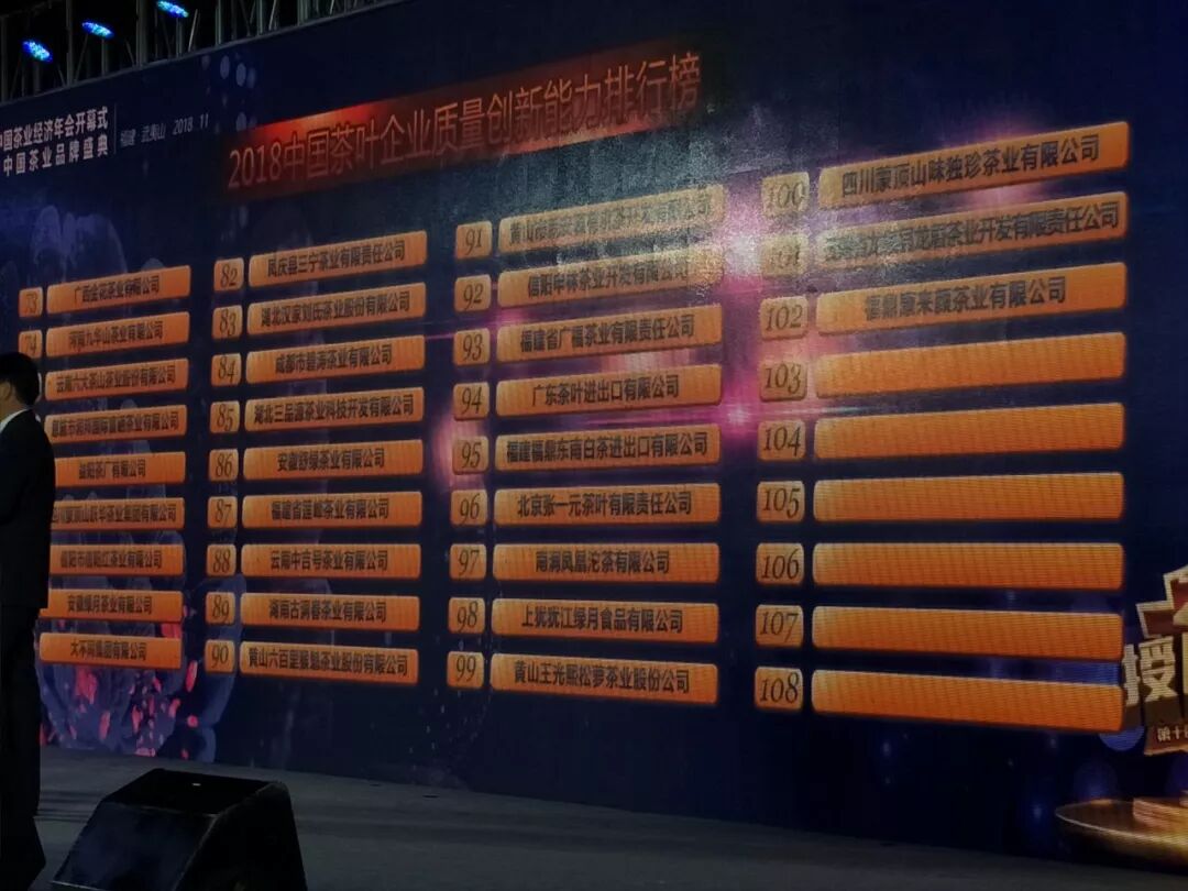 六大茶山在“2018中國茶葉企業(yè)質(zhì)量創(chuàng)新能力排行榜”上位居第75名。
