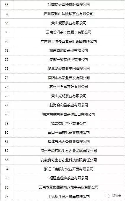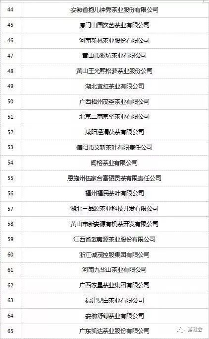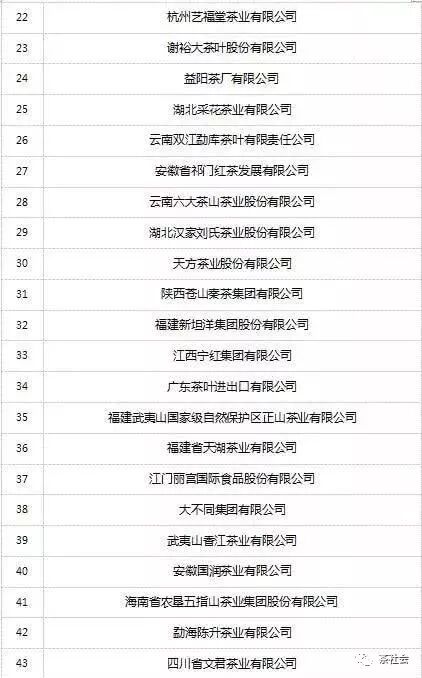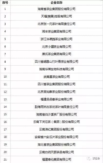 2018中國茶葉百強企業(yè)名單