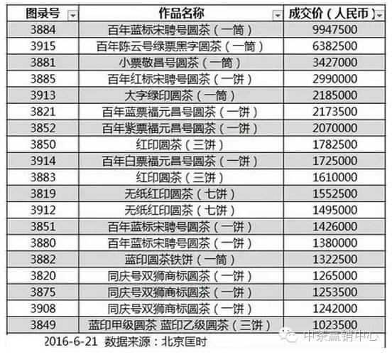 成交價(jià)格百萬(wàn)人民幣以上老茶一覽: