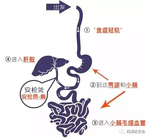 飲茶30分鐘后:離開食道和腸道,抵達(dá)血液和肝臟。
