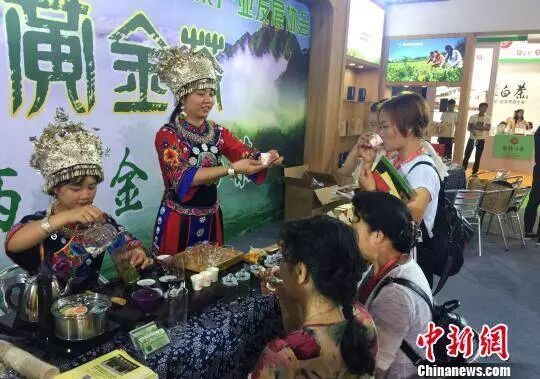 觀眾在展會現(xiàn)場品茶?!∠蛞基i 攝