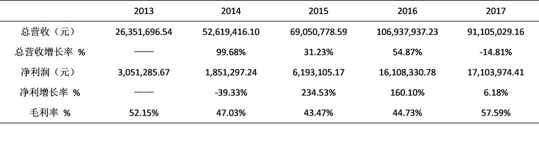 最高凈利潤為2017年度1710萬,最低凈利潤為2013年度305萬。