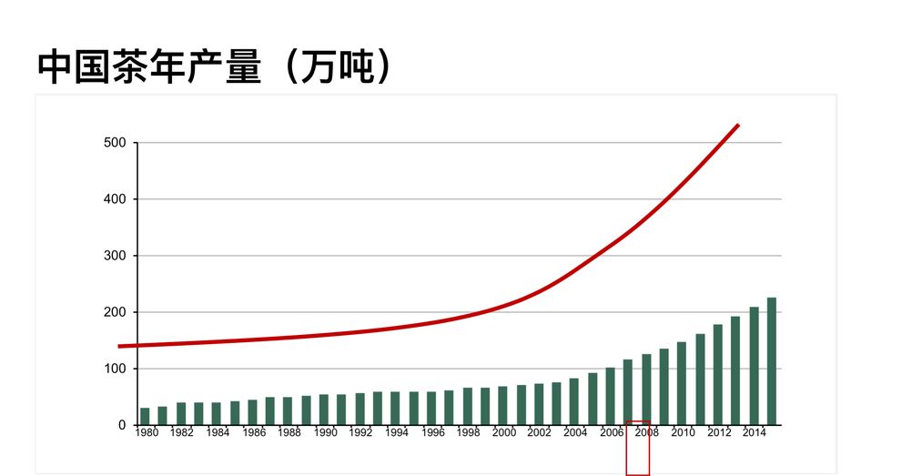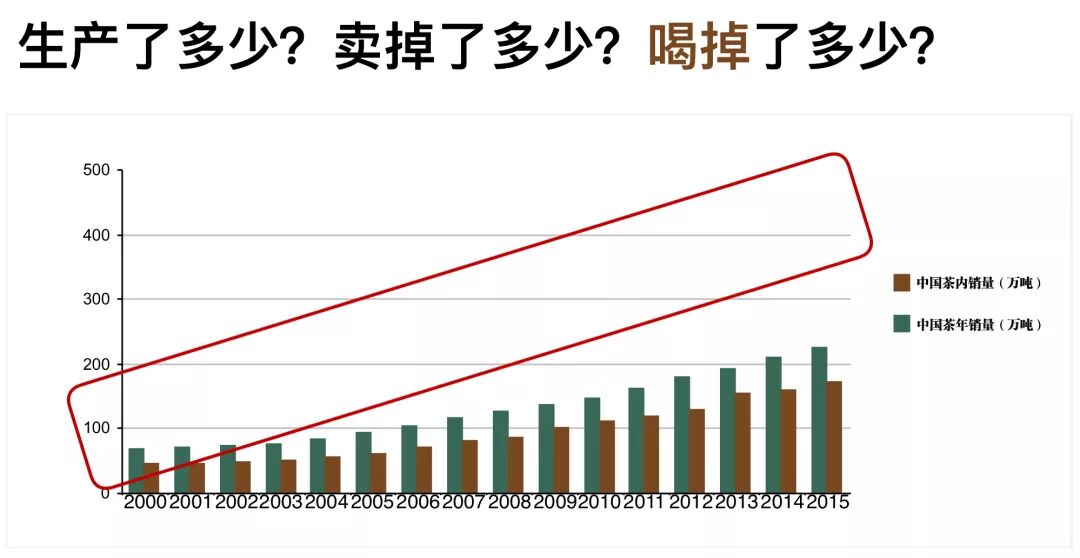 1. 中國茶進入黃金年之后,生產(chǎn)增量和消費增量嚴重不匹配。2006年之前,算是賣茶人的好時候,供求匹配,甚至還可以有選擇性地出售;而進入黃金年之后,供求嚴重不匹配,生產(chǎn)增量過速增長,消費端還沒打開。