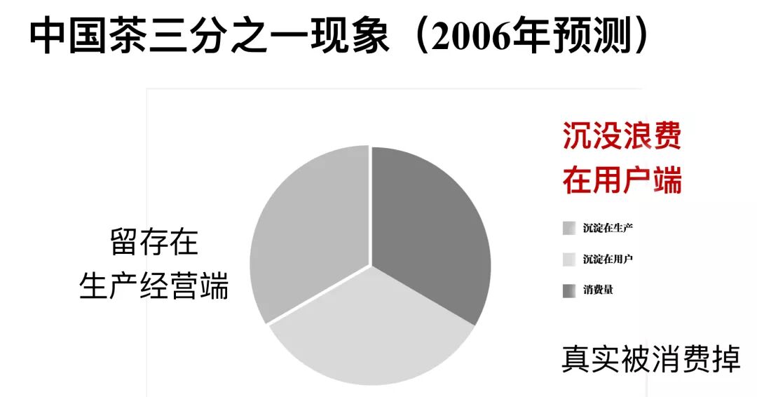 2006年,我通過觀察調(diào)研發(fā)現(xiàn):中國有2/3的茶葉被真實賣掉,而另1/3是留存在生產(chǎn)經(jīng)營端如茶廠、茶鋪等沒有賣掉,現(xiàn)在老茶越來越多的現(xiàn)象與這一點無不關(guān)系。