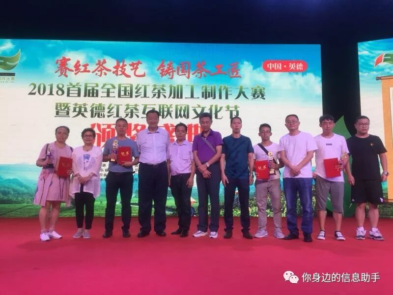 ▲圖為獲獎選手與頒獎嘉賓合影,其中左四王慶(中國茶葉流通協(xié)會會長)、右四郭俊(獲金獎)、左三蘇春瑜(獲銀獎)、左一徐才梅(獲銅獎)。