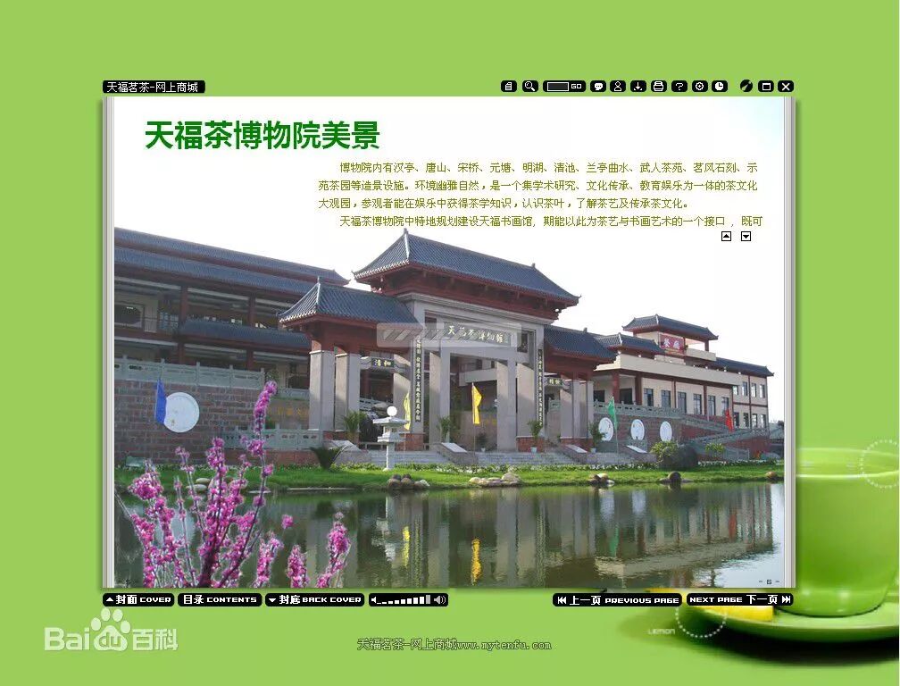 天福茶博物院是由天福集團(tuán)投資興建的公益文化事業(yè),也是集團(tuán)總裁李瑞河先生秉承“取之于茶,用之于茶”弘揚中華茶文化的理念所作出的一大成就。天福茶博物院始建于2000年初,2002 年建成開院。整個博物院總占地130畝是目前世界最大的茶博物院,現(xiàn)為國家AAAA級旅游景區(qū),農(nóng)業(yè)部首批全國農(nóng)業(yè)旅游示范點。