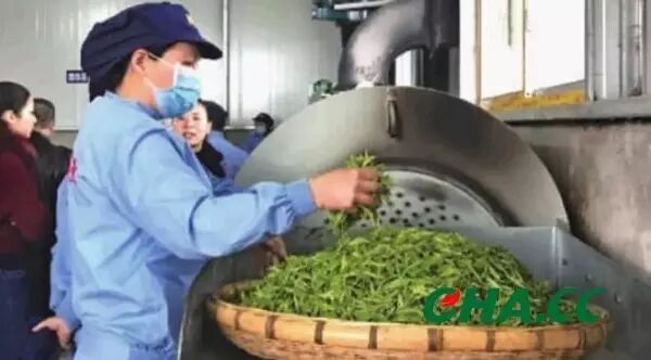 記者還了解到,保靖黃金茶的制作過程中對溫度、技術(shù)等十分講究。在茶婆峰的制茶加工廠中,加工人員黃先生告訴記者,茶葉加工過程至少需要四五人同時進(jìn)行,按一天工作12小時算,每天大概可以加工500斤茶葉?!安枞~加工一般要經(jīng)過萎調(diào)、殺青、揉捻、烘焙等工序。鮮葉進(jìn)到廠子里要先萎調(diào),減少茶葉中的含水量,然后用250℃至280℃的適宜溫度進(jìn)行殺青,再將其中的焦葉、雜質(zhì)等人工篩選出來,經(jīng)過機(jī)器揉捻、三道烘焙才可制成香氣濃郁的茶葉。”