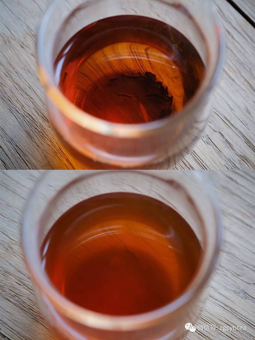就湯色而言,因?yàn)樵虾凸に嚨牟町?,有的金黃、有的淺紅、有的橘紅,都很正常。昌寧紅的招牌還是琥珀金湯呢。