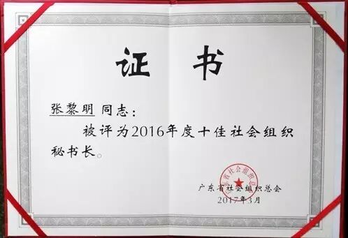 張黎明秘書長被評為2016年度十佳社會組織秘書長