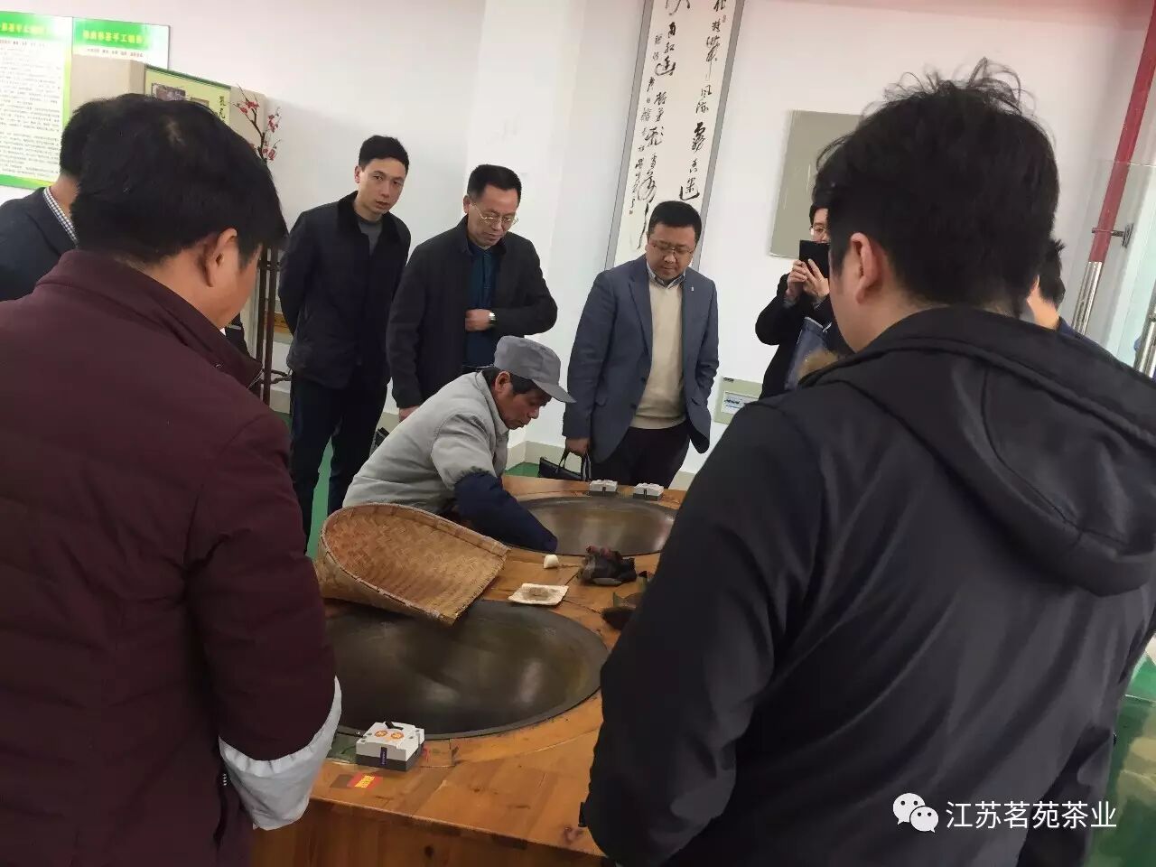 與會(huì)代表觀看“茗苑曲毫”手工炒制