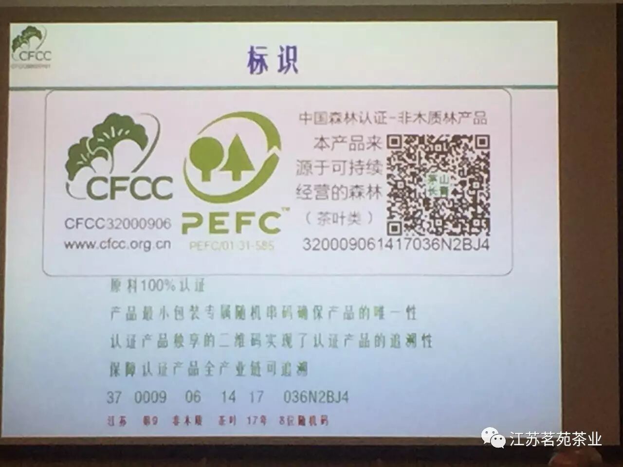 “茗苑曲毫”森林認(rèn)證銘牌