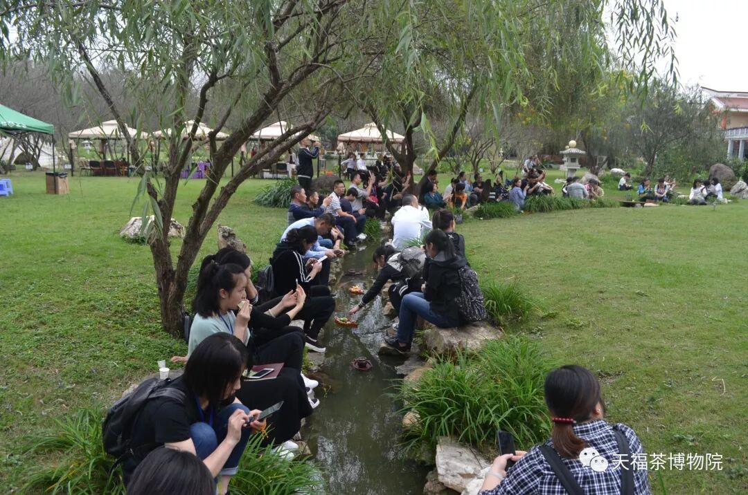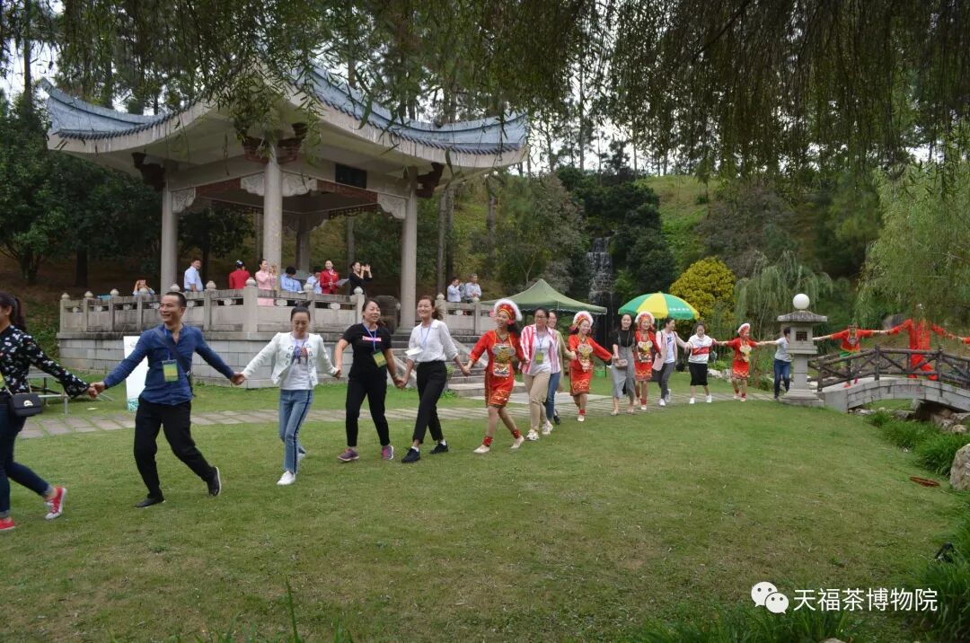 為豐富此次參訪行程,中午12:00在茶博物院開展了一場別來生面的“曲水流觴”活動,節(jié)目豐富多彩,其中茶藝表演、民樂串燒、問題競答、手語表演等節(jié)目交替進行。最后茶藝組同仁與經(jīng)銷商手拉手圍成大圓共舞,把活動推向了高潮,大家心連心,祝愿大家的業(yè)績蒸蒸日上,祝福天福的明天更美好。