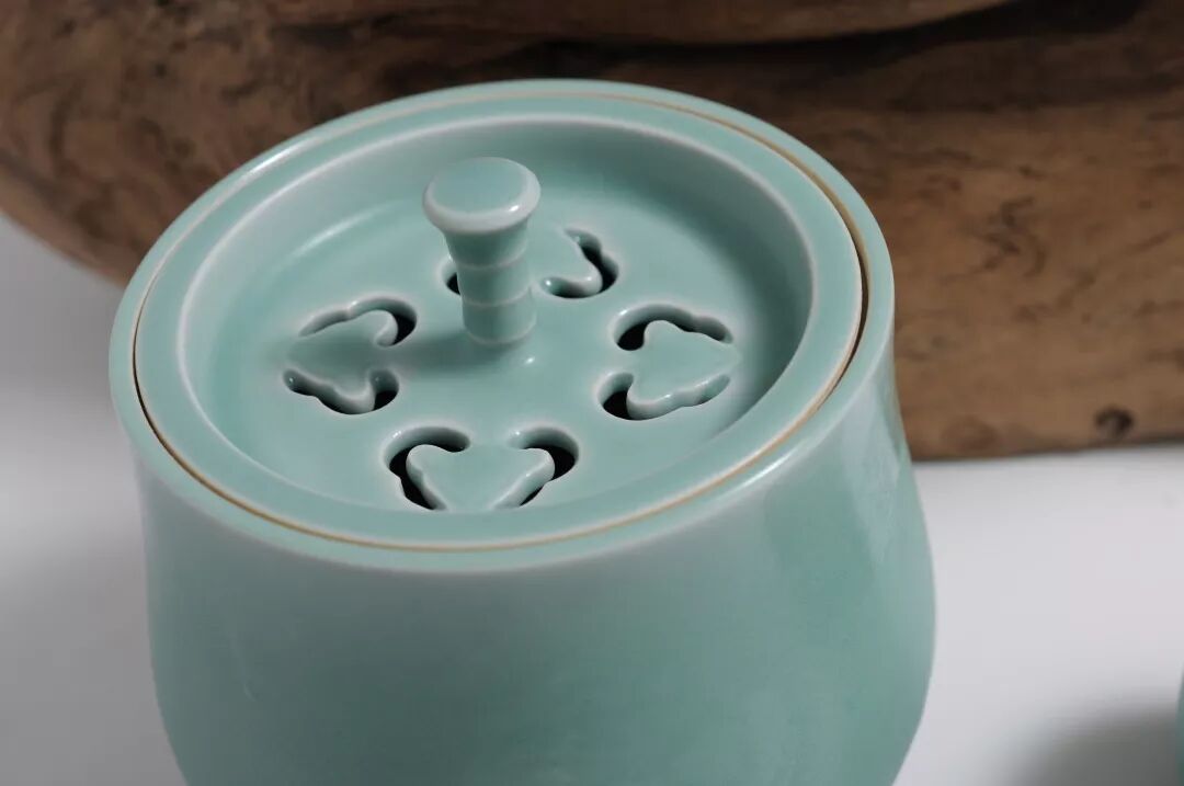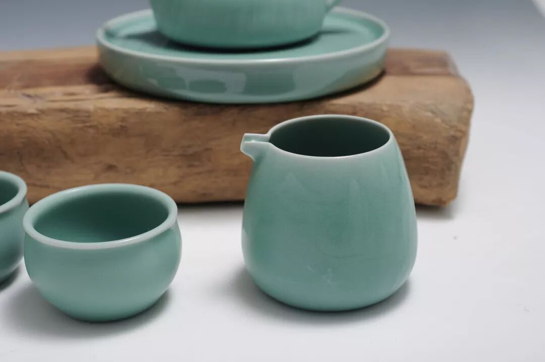 在這套茶具里,純正的粉青釉,青中泛綠,綠中透粉,清透勻凈,柔美澄澈,似閨秀素顏,如溫潤(rùn)美玉。
