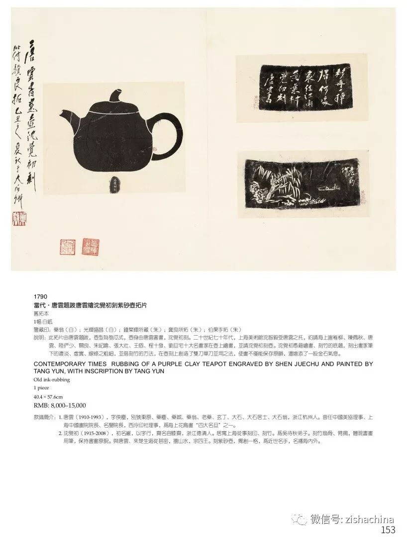 1790 當(dāng)代 唐雲(yún)題跋唐雲(yún)繪沈覺(jué)初刻紫砂壺拓片