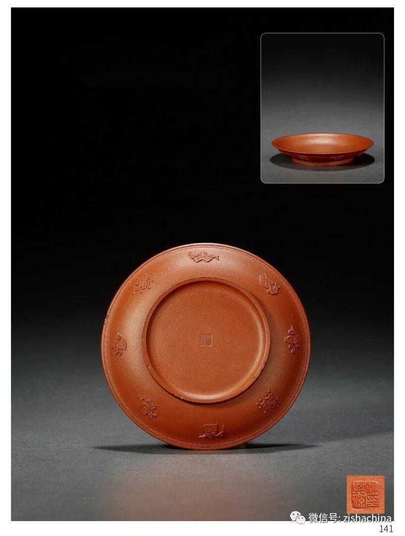1780 清早期 陳其淵制朱泥貼花賞盤