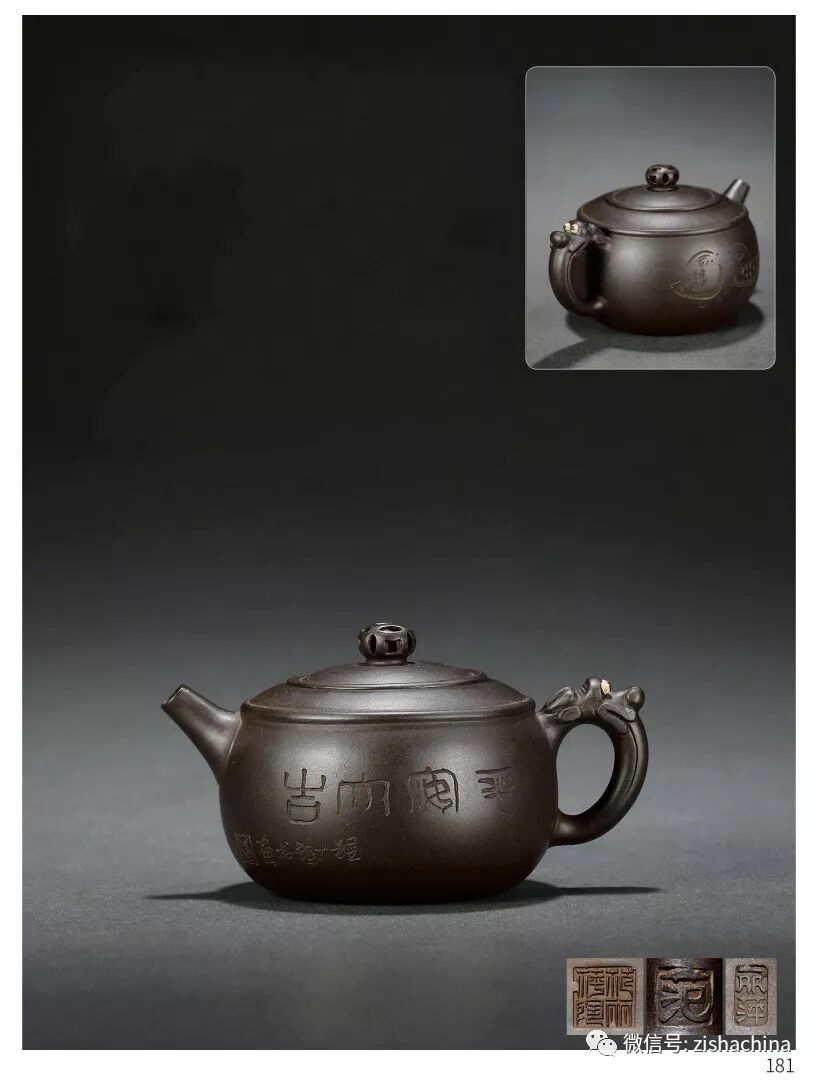 1697 當(dāng)代 陳國(guó)良寫并刻、袁小強(qiáng)制紫泥無(wú)垢壺