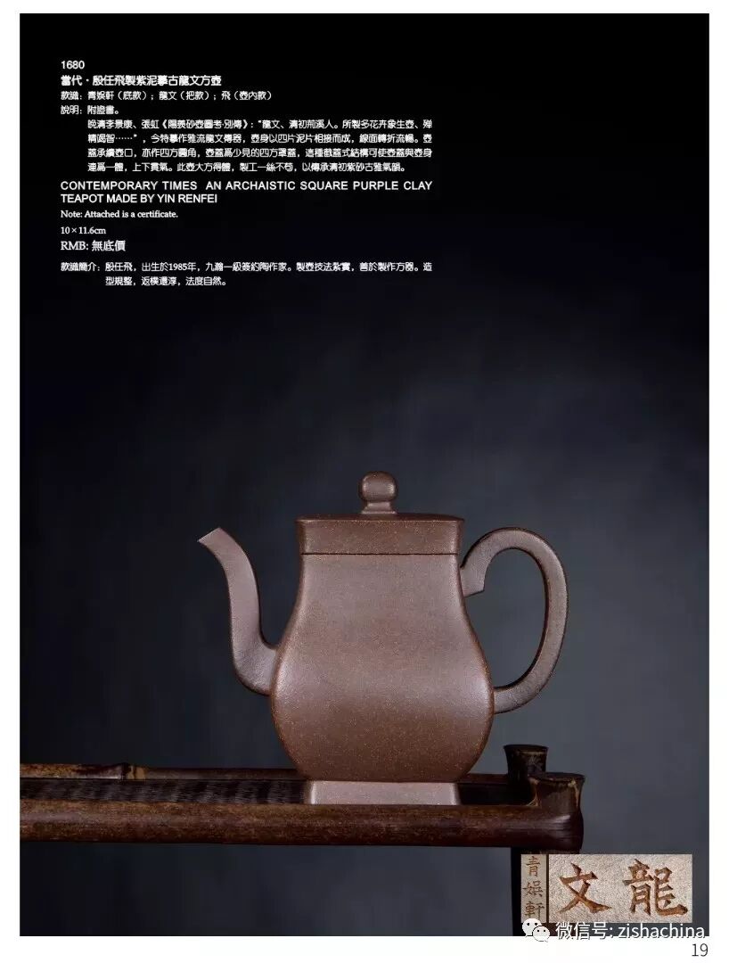 1680 當(dāng)代 殷任飛制紫泥摹古龍文方壺