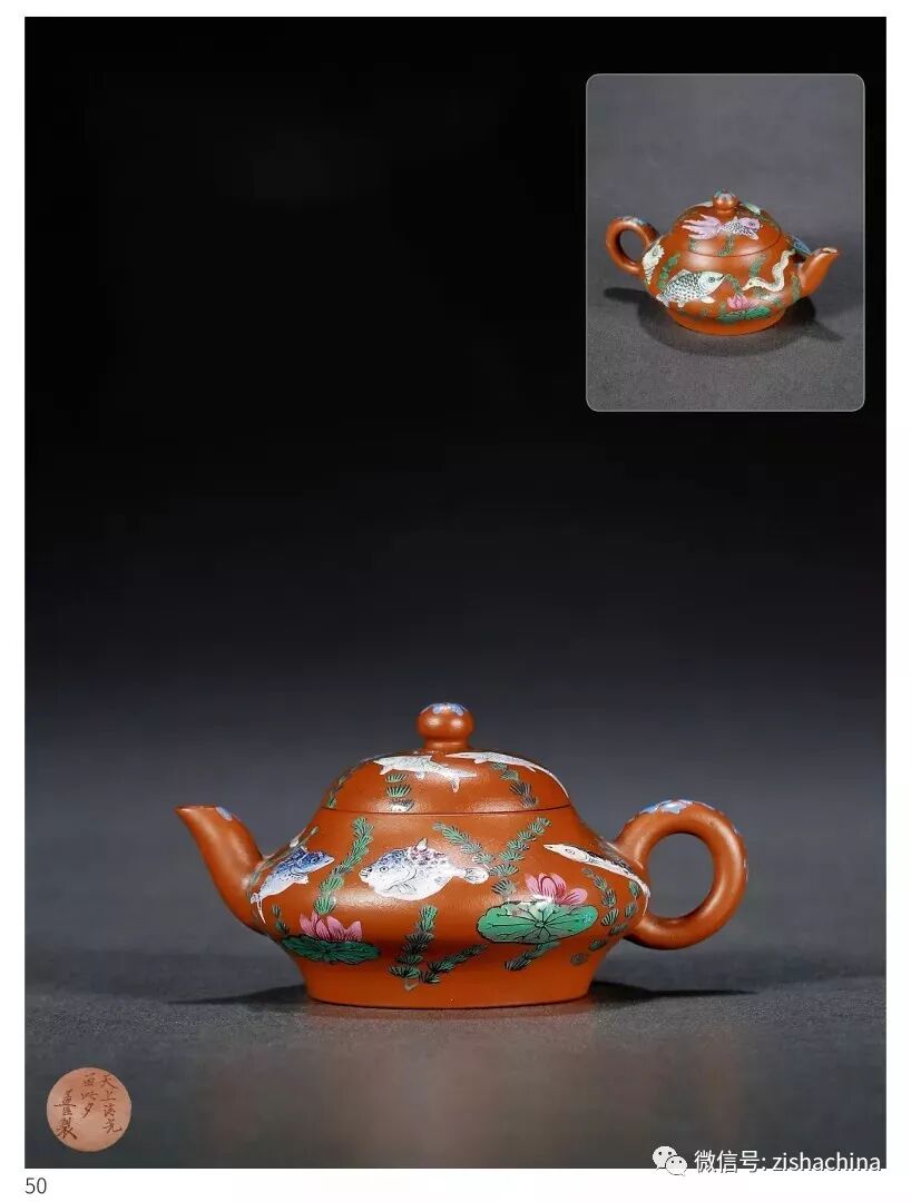 1707 清中期 孟臣款朱泥上彩扁燈壺