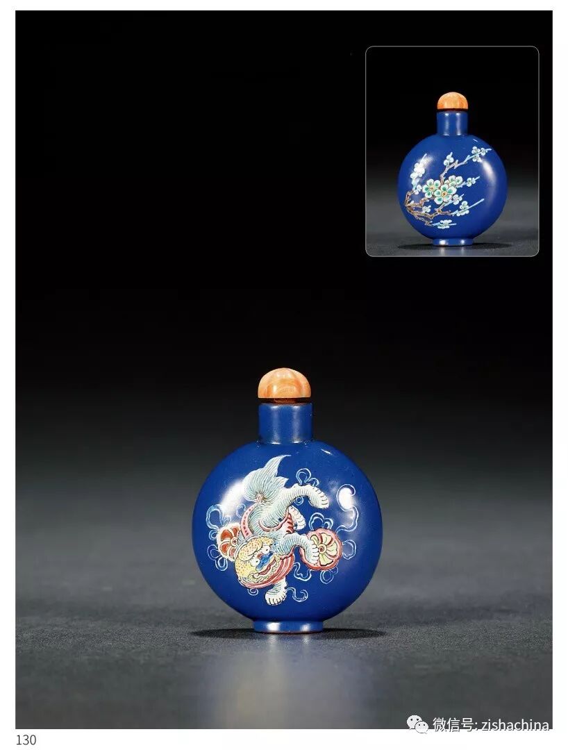 1770 清中期 紫砂胎藍(lán)地粉彩鼻煙壺