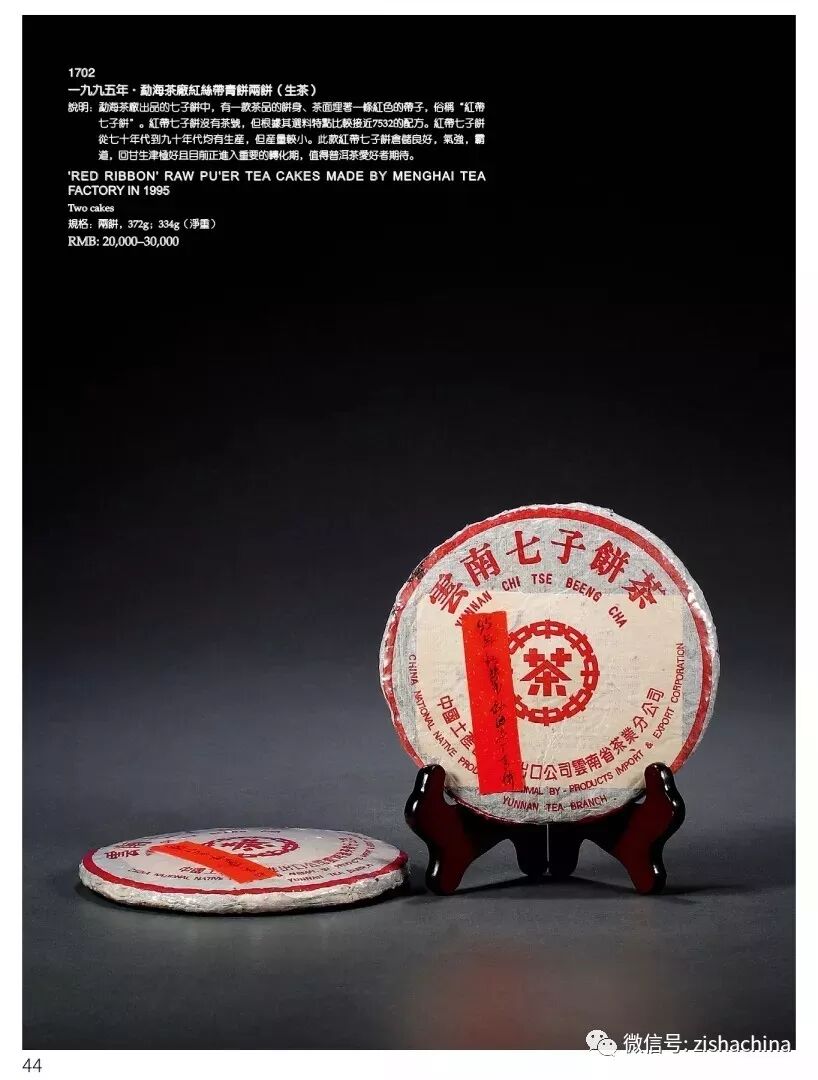 1702 1995年 勐海茶廠紅絲帶青餅兩餅(生茶)