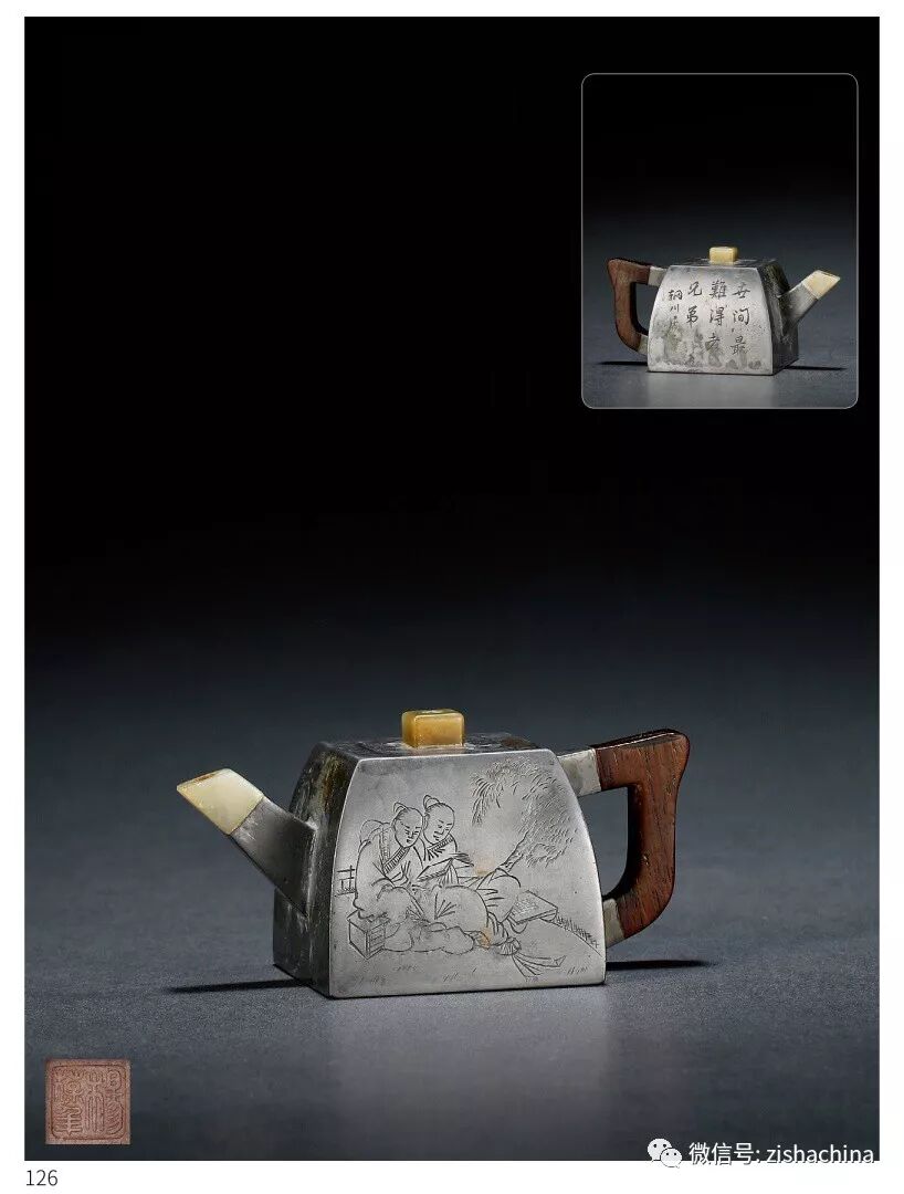 1767 清中期 楊葆年制輞川居士刻人物詩(shī)文錫包砂胎升方壺