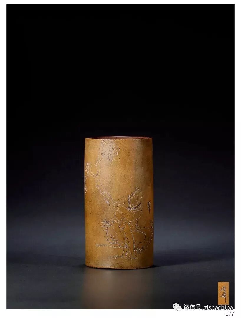 1813 清晚期 玉成窯伯年款紫泥粉漿帽筒