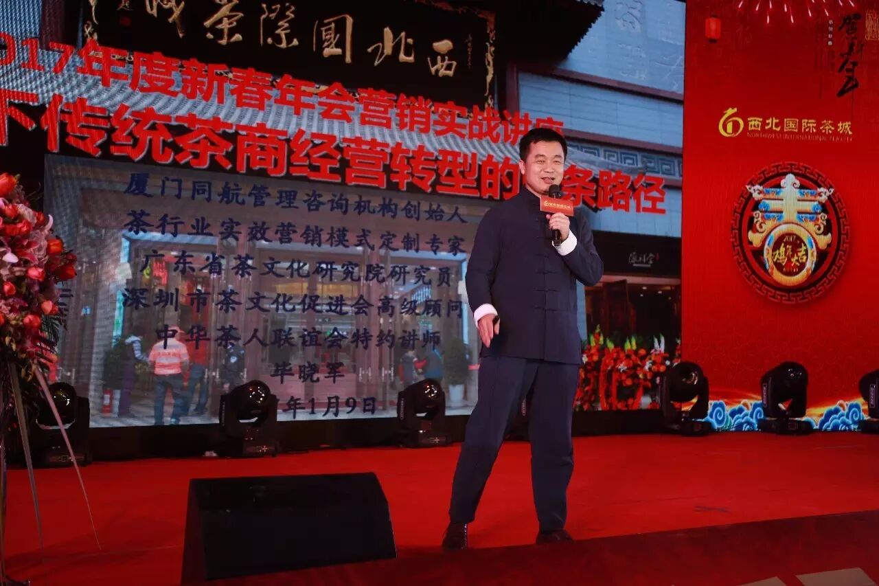 在年會開始之前由畢曉軍老師現(xiàn)場授課給大家傳授茶業(yè)經(jīng)銷理念和方法,