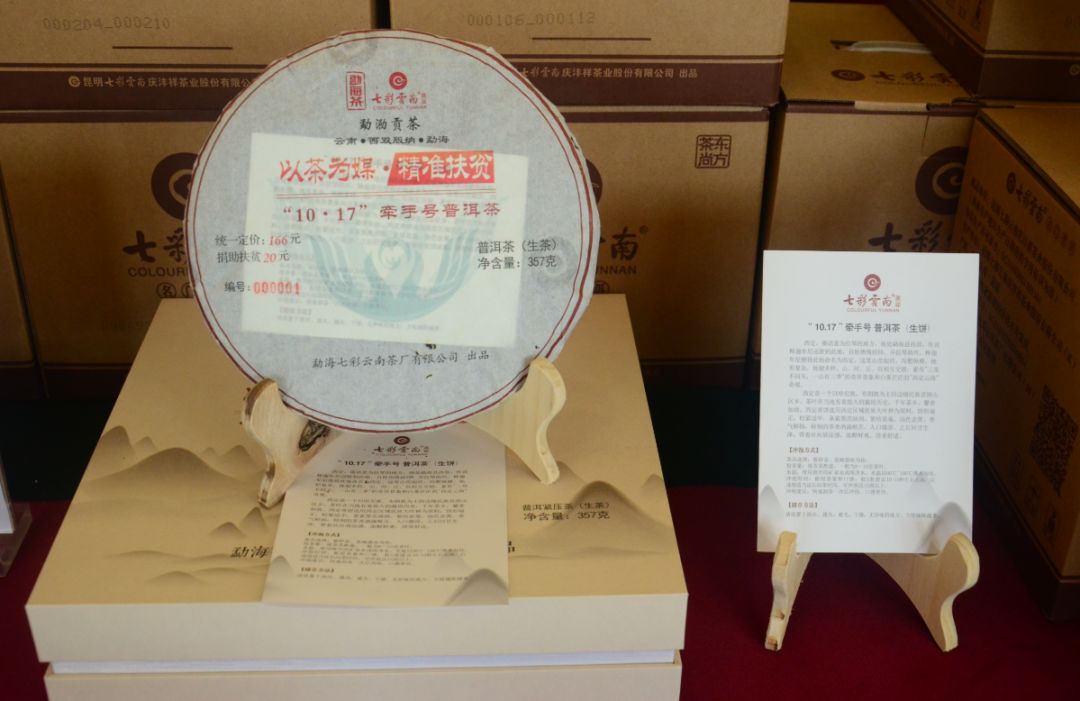 20181017日第5個(gè)扶貧日之際,七彩云南茶業(yè)參加了由云南省委省政府在云南昆明海埂會(huì)堂特別啟動(dòng)的“以茶為媒·精準(zhǔn)扶貧——“10.17”牽手號(hào)普洱茶助推云南脫貧攻堅(jiān)公益活動(dòng)”。牽手勐??h西定鄉(xiāng),匠心精制“10.17 牽手號(hào)·西定青餅,您只要購(gòu)買一餅該產(chǎn)品,七彩云南茶業(yè)就向茶農(nóng)捐20元,用西定茶香,承載起貧困山區(qū)茶農(nóng)脫貧致富的希望。