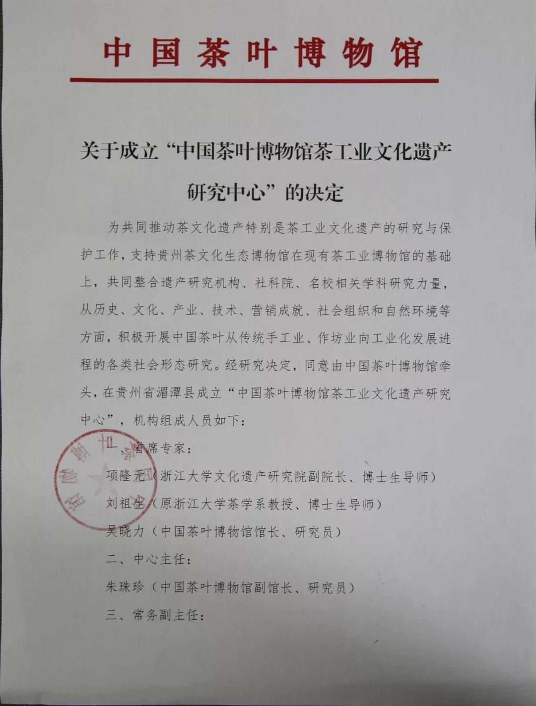 中國茶葉博物館館長吳曉力宣讀文件,成立“中國茶葉博物館茶工業(yè)文化研究中心”。