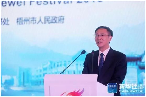 廣西壯族自治區(qū)政協(xié)副主席劉慕仁、中共梧州市委書記全桂壽、中國珠寶玉石首飾行業(yè)協(xié)會副會長洪濤陽在開幕式上致辭。梧州市市長李杰云主持開幕式。